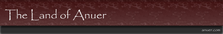 1-3-2006: Work has begun on the Player's Guide to Anuer Handbook. Character creation has almost been completely finalized and the section on skills in now well over halfway done. Maps have been created and are now available and can be found by following the Land of Anuer Link.